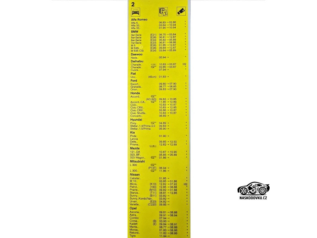 Stírací lišty , stěrače přední pro Škoda Favorit , Volkswagen Golf II , Fiat Uno, atd...